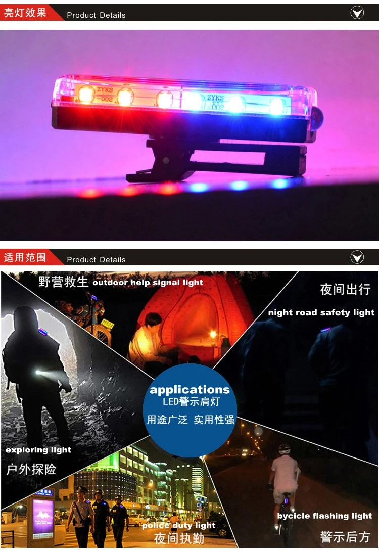 Working modes: 1: Press button once/red blue flashing light working mode 2: Press button twice/white color LED lighting 3: Press button third time/off Products detail pictures :